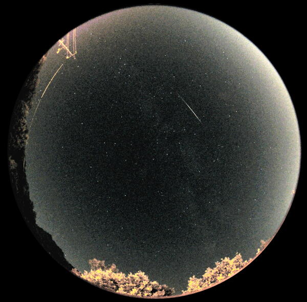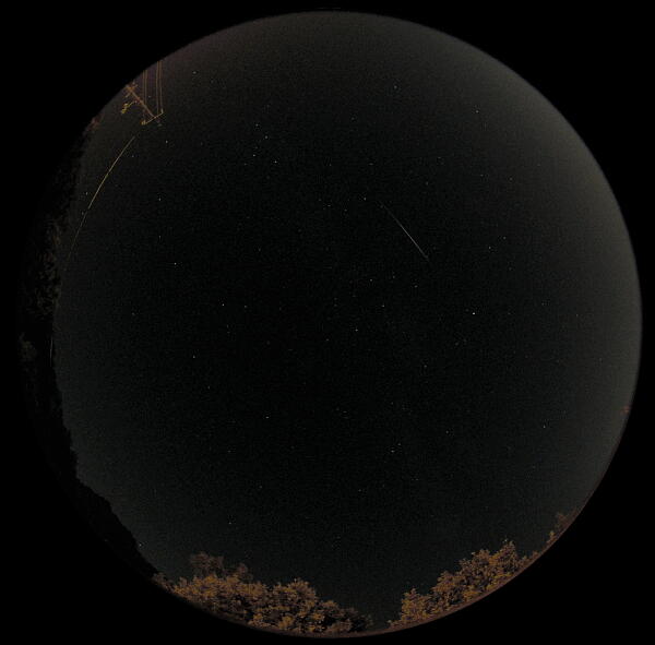 夕べはちょ~っと夜更かしをして,今が旬のペルセウス座流星群を見に行ってきました。 ついでに,D90&円周魚眼レンズも携えて。 何処まで行けばいいかなぁ・・・というのが微妙だったのですが,とりあえずは北へ向かうことに。 30分ほど走ったところで,広い駐車場のあるコンビニの駐車場に車を駐めて空を見上げると・・・あ,ここでも結構見える。 街灯だらけの街中よりも遙かに綺麗な星空が見えました。 いや,そのコンビニがある場所が,かなり田舎っつーか街外れなんですが(苦笑) とは言っても,国道沿いなので車はそれなりに通っているし,コンビニ自体の明かりもそれなりにあるので,今一つ。 ついでに言えば,コンビニの駐車場でカメラを構えるってーのも・・・。 と言うことで,更に北上。 で,ふと閃いたのが,そこから30分ほど行ったところ(高梁市某所)の展望台。 市街地側の山の中腹から市街地全体を眺めるような感じで作られている展望台ですが,空もかなり開けています。 ・・・円周魚眼レンズでの撮影となると,周囲の山とか側の木立とかがどうしても映り込んではしまいますが。 それよりも難点は,道路の街灯。 展望台には一切の照明がないのですが,側の道路(国道)がちょっときつめのカーブになっているせいか,それなりの光量の街灯が2基設置されています。 円周魚眼レンズにばっちりと映り込む位置で・・・。 避けようがないので,それは諦めました。 で,せめて直接の光を避けようと,レンズカバーを取り付けるためのアダプターを付けたままにすることに。要は筒なのですが,これを付けたままだと視界が多少狭くなりますが,即ち街灯からの直接の光を遮断できる,と言うことです。 ・・・街灯と反対側のアダプターの内側には,光が当たってしまうということに気づいたのは,今日の昼になって,撮影データの確認をしてからでしたが・・・。 閑話休題 さて,流星群を撮影できるかどうかに関していうと・・・半分以上が賭の領域ではないでしょうか。 何しろ,タイミングが全く予測できません。 見えてからシャッターを切ったところで,絶対に間に合うはずはないですから。 となると・・・長時間露光にして,シャッターが開いている間に流れてくれることを期待する。位しか,できる手段はないでしょう。 ってことで,ちょーっとミスったのが,32GBのSDHCカードを入れていたつもりで,入っていたのが2GBのSDカードだったという点。 星を相手にするわけですから,記録モードは当然ながらRAWですが,となると・・・容量が心配です。 まぁ,やってみることにしましょう。 ってことで,30秒のセッティングで自分でも眺めつつ只ひたすらシャッターを切ることに。 後半からはシャッタースピードをバルブ(開放)にして,40~60秒程度に適当に変えながら撮影してました。 80枚弱を撮影して,シャッターを開いている間に流れたのが3回ほど。 うち1つは結構明るいものだったので,それに期待です。 肉眼では10個ほど見えたんですけどね。 で,今日になってからデータを整理して・・・って,最初にざっと見たときには全く見えませんでした。 いや,あのタイミングは絶対に写っているはずだと,画像を100%表示にしてデータを端から全部見ることに。 そうしたら・・・ありました。 1枚だけ。 早速TIFF形式に変換してから「TheGraphics[ペイント]」で処理をすることに。 まずは,街灯の明かりを遮るために使ったレンズカバーのアダプターが,逆に街灯の光を受けてかなりハデに映り込んでしまっているので,それをマスキングして取り除くところから。 それから明るさの調整。 トーンカーブを編集して,暗く潰れている部分を浮き上がらせます。 やり過ぎると,全体が荒れてしまうので,その辺りの調整が大変ですが。 で,その結果です。 一応,大ざっぱにですがカメラの上が北を向くようにセッティングしました(実際は少し東に向いていますが)。 中央から見て右上にある斜めの筋が,流れ星を捉えたヤツですが・・・多分サムネイルでは無理だと思いますので,拡大版(とは言え,Web用にサイズは縮小してあります)でご覧下さい。 ただ,その程度のおとなしい処理では分かりづらいので,ソフトに任せた自動調整の結果がこちらです。 それにしても・・・。星の撮影に関しては,まだまだ経験値が足りなさすぎだよなぁ・・・。 PR