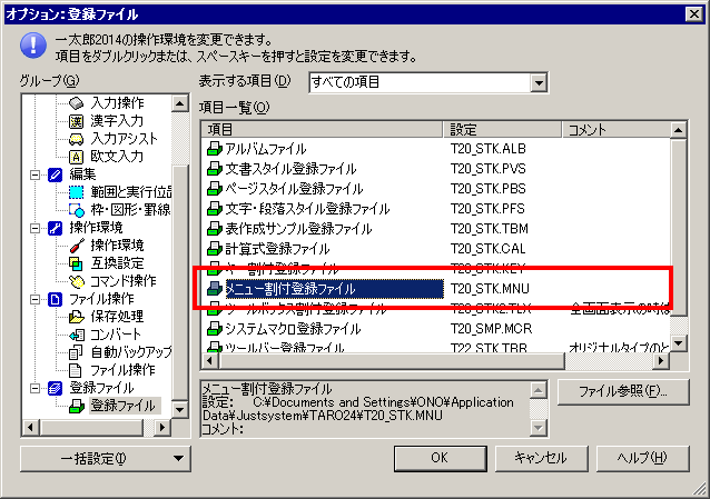 終業後に何とか時間がとれたので,サポートへ電話をかけて,症状を説明。 その場でちょっと待たされて指示されたのが・・・ 1:JUST PDF3をアンインストール 2:JUST PDF2をインストール 3:JUST PDF2のアドオン設定を再設定(解除) 4:JUST PDF2をアンインストール 5:JUST PDF3をインストール 6:JUST PDF3のアドオン設定 という手間がかかる手段でした。 手間以前に,職場に一太郎2012承プレミアムのディスクを置いていなかったので,その場では試せないんですが・・・。 それよりも,実はこれと似たような手段は既に実施済みでした。 と言うのも,職場には3台のパソコンを持ち込んでいるわけですが,一太郎は1パッケージで3台までインストールできるので,そのうち2台までインストール作業を済ませています。 で,1台目のインストールが終了した時点でこの症状に気づいていたので,2台目ではインストール作業を次のような流れでやってみました。 1:一太郎2014徹,ATOK2014をインストール 2:JUST PDF2のアドオン設定を解除 3:JUST PDF3他の追加ソフトをインストール 注:この時点でJUST PDF2は自動的にアンインストールされている。 が,それでも症状は同じでした。 と言うことを伝えたところ,「少し時間をください」ということに。 って,20~30分ほどで電話がかかってきました。 そこで指示されたのが・・・ 1:ツール(T)メニューから,オプション(O)→ オプション(O)と進んで,オプションの設定ダイアログボックスを表示させます。 2:左側のグループから,「登録ファイル」を選んで,一覧を表示させます。 3:「メニュー割付登録ファイル」をクリック → [ファイル参照(F)]ボタンをクリックして,ファイルの選択画面を開くと,「T20_STK.MNU」と「T24_STK.MNU」があるので,「T24_STK.MNU」を選択します。 4:後は,[OK]ボタンを押して戻ります。 これで確かに消えました。 ファイル名から推察して,「T20_STK.MNU」が一太郎2010のファイルと思われます。 一太郎2010から2012,2014へとバージョンアップしつつ,ショートカットキーやオプションの設定を引き継いで使っていたわけですが,そのせいで変なことになったのでは,という予想が成り立ちます。 しかし・・・環境の引き継ぎが,文字通り設定ファイルをそのまま引き継いで使っている,んだとは思わなかったなぁ(苦笑) |